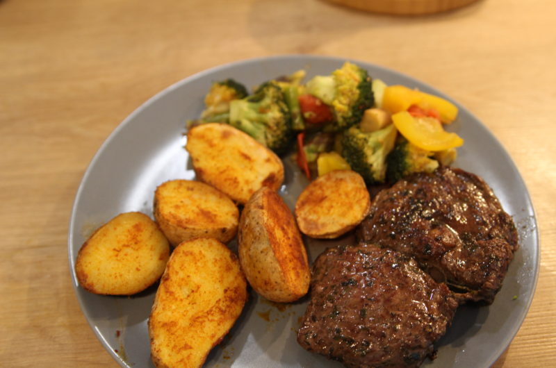 Wer kennt nicht die Lust auf ein saftiges Steak (außer vielleicht Vegetarier)? Neben ein gutes Stück Fleisch sollte man auch andere Beilagen als Pommes und den kleinen gemischten Salat wählen. Da ich aber auf Kartoffeln stehe, möchte ich nicht auf diese verzichten. Wie gut, dass man noch mehr mit den den Erdäpfeln machen kann, als frittieren. Fürs Gewissen fehlt auch das Gemüse nicht. Gerade beim Fleisch achte ich darauf, dass dieses direkt vom Metzger kommt. Das bedeutet nicht, dass man das teuerste Fleisch holen muss, mir geht es eher darum auch den lokalen Einzelhandel zu unterstützen.